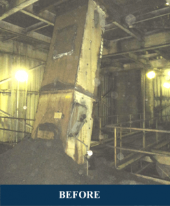 - Replacement of a simple box design chute at the end of life with an engineered transfer system designed to control the material