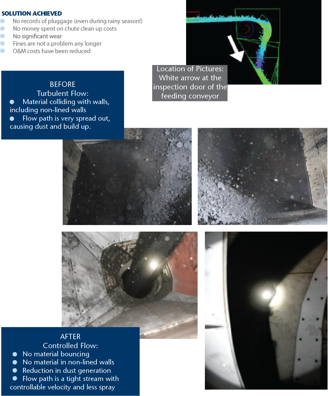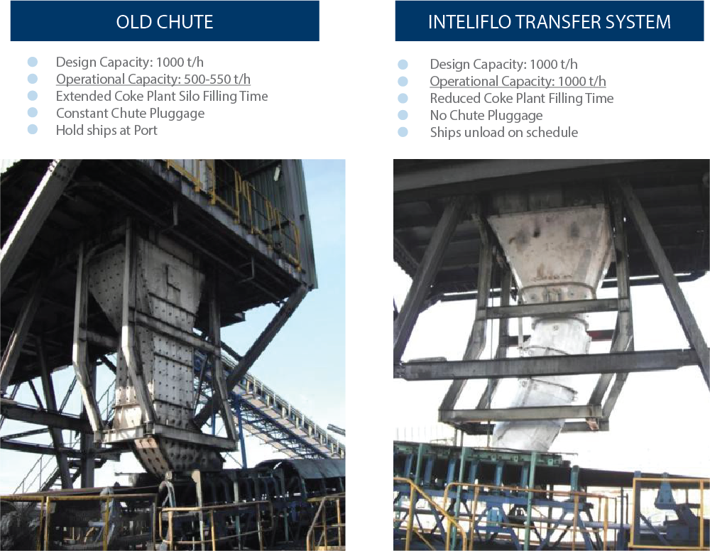 A full-service, comprehensive steel plant in Brazil was experiencing multiple problems with its chute. The constant issues meant the plant had to keep workers standing around the chute during operations to clean up spillage and ensure any pluggage was dealt with. Consequently, maintenance and housekeeping costs were very high. In addition, the vessel companies were charging the plant huge fines because they were taking too long to fill the silos. Therefore they were not able to get ships unloaded promptly. So the plant turned to Benetech Brazil to design a system that would: